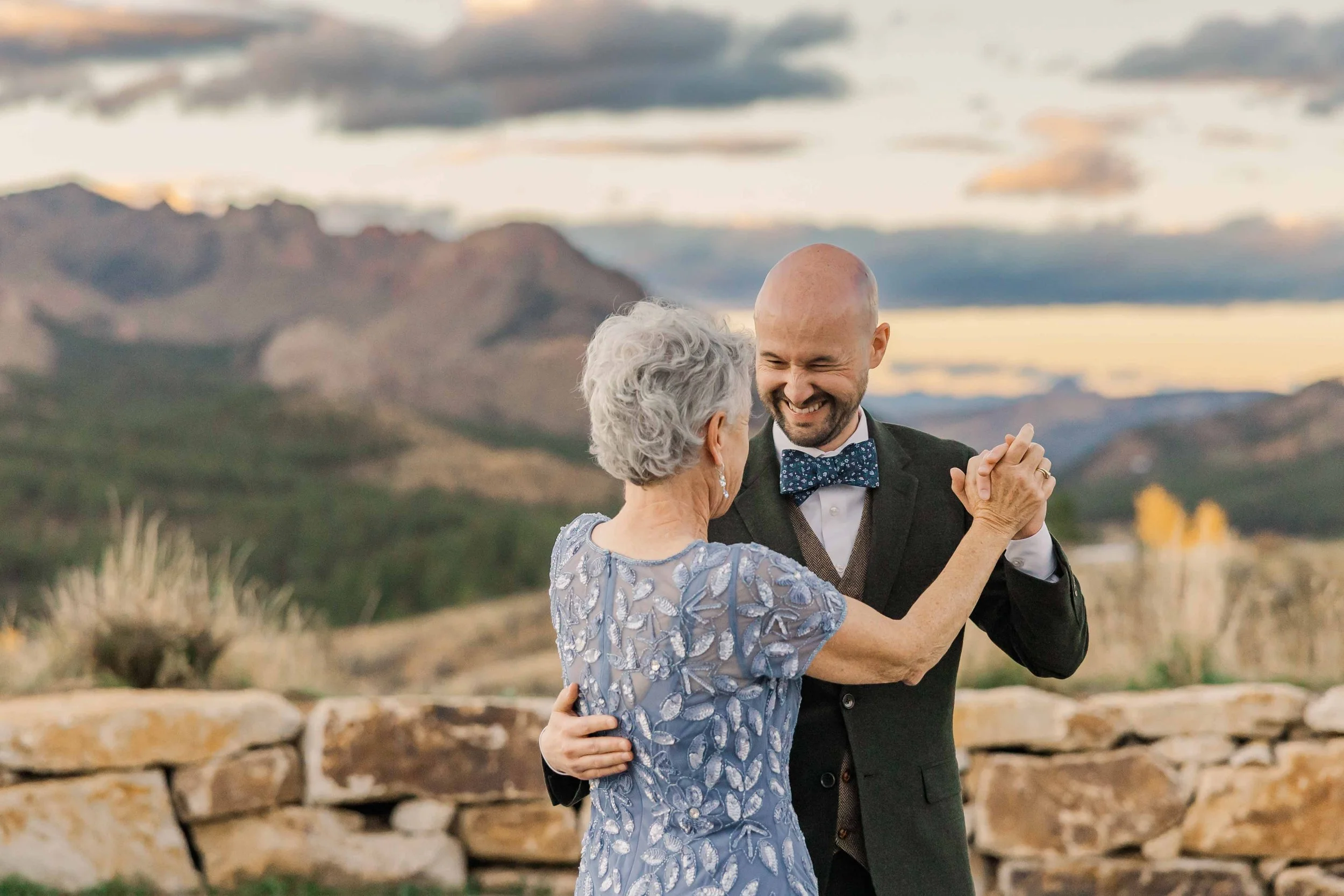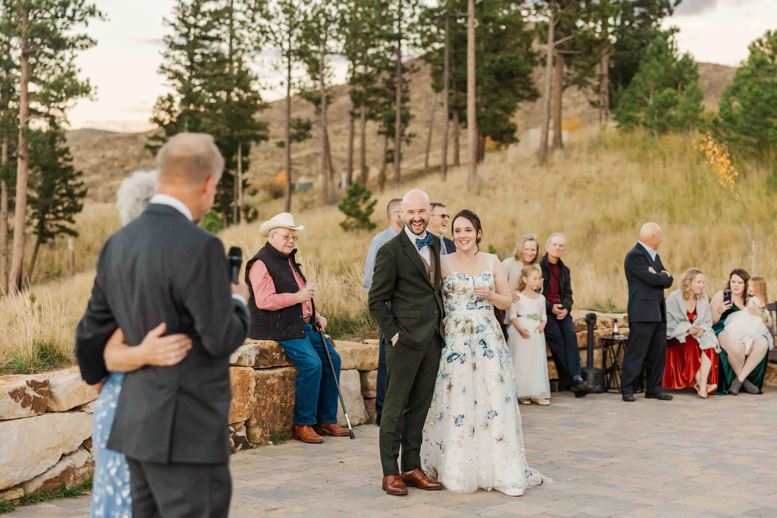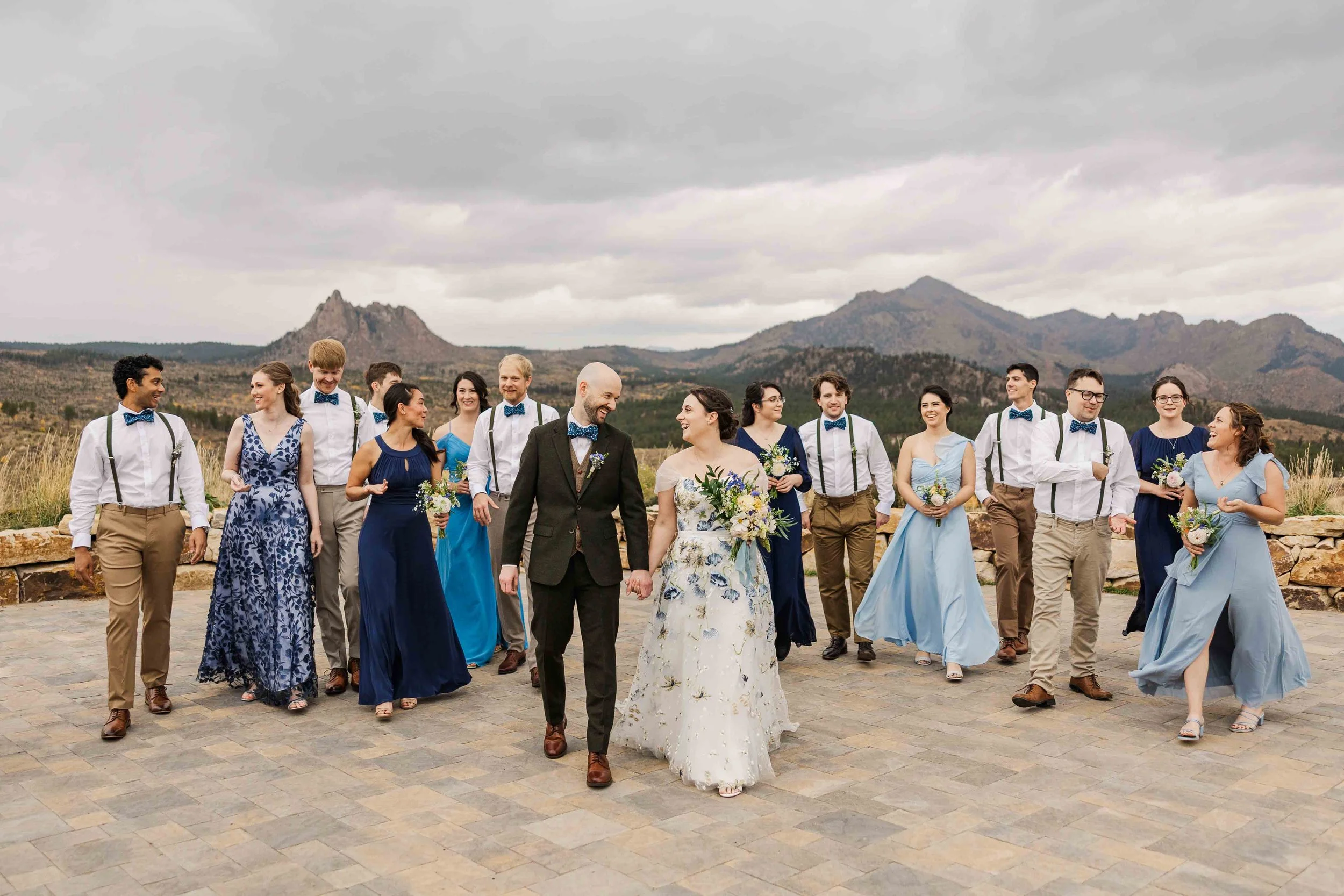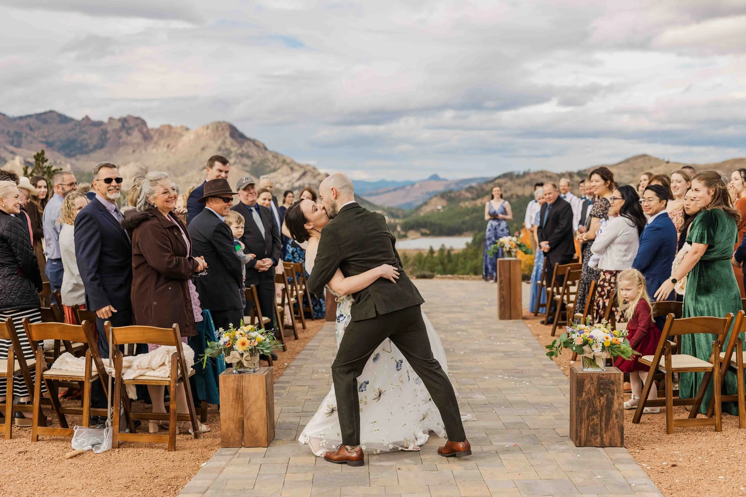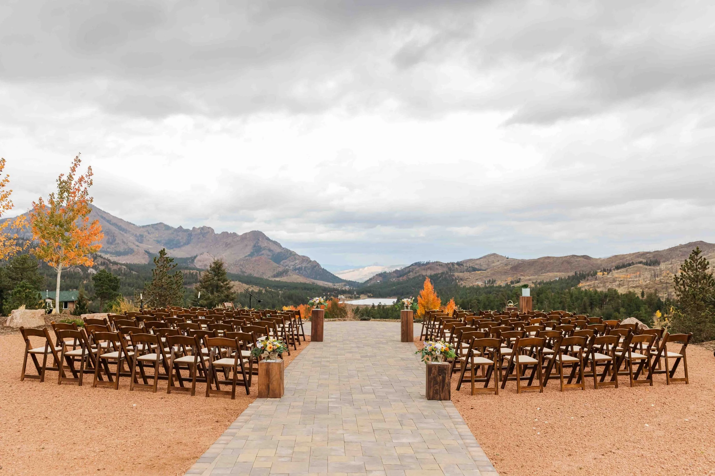 Beyond the colors, the temperate weather made it easy to spend most of the day outdoors. From their first look to their ceremony, cocktail hour, portraits and even their first dance, the celebration for the most part took place outside. Their celebration allowed them to fully soak in the beauty of Pikes Peak with the presence of their guests.