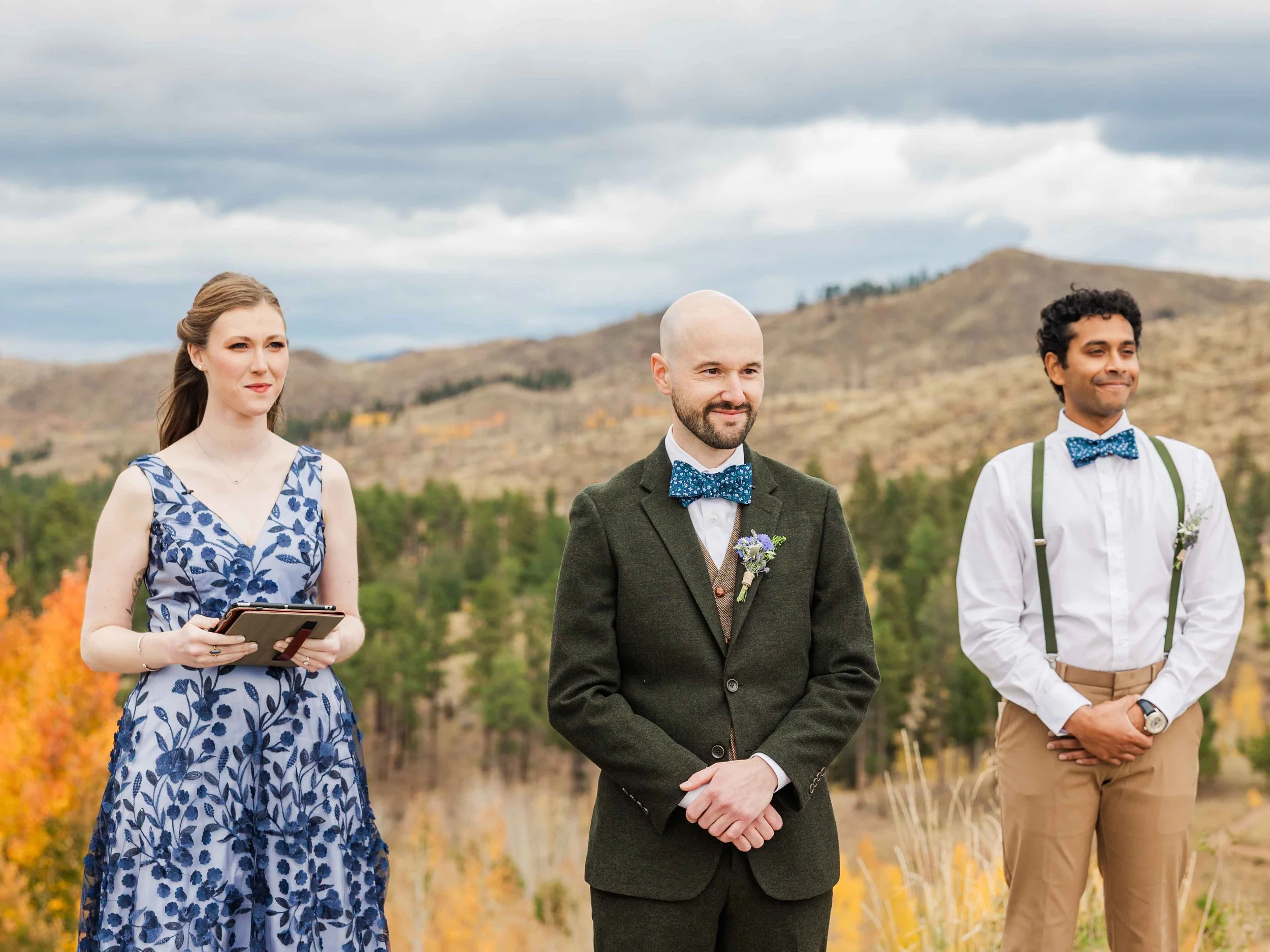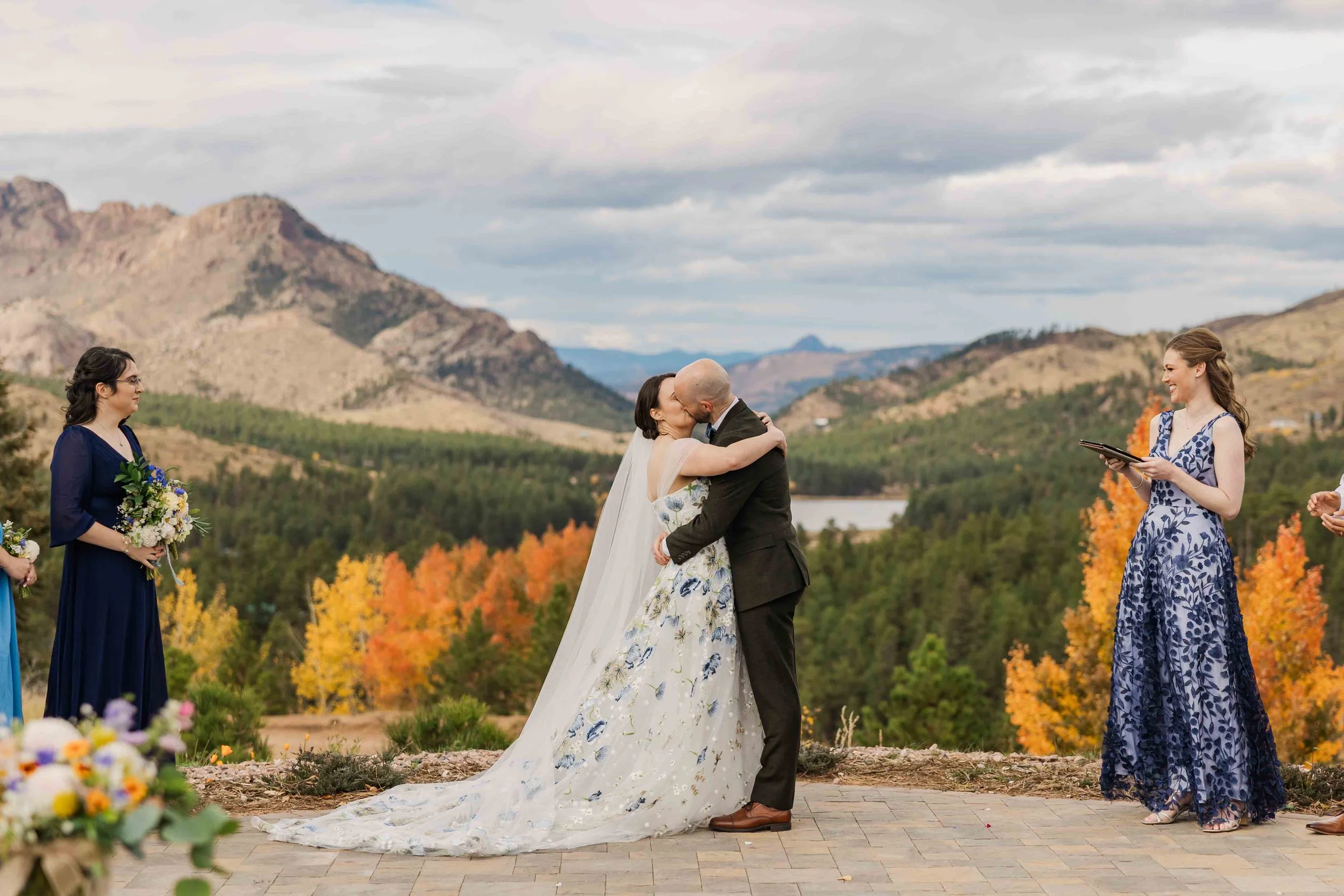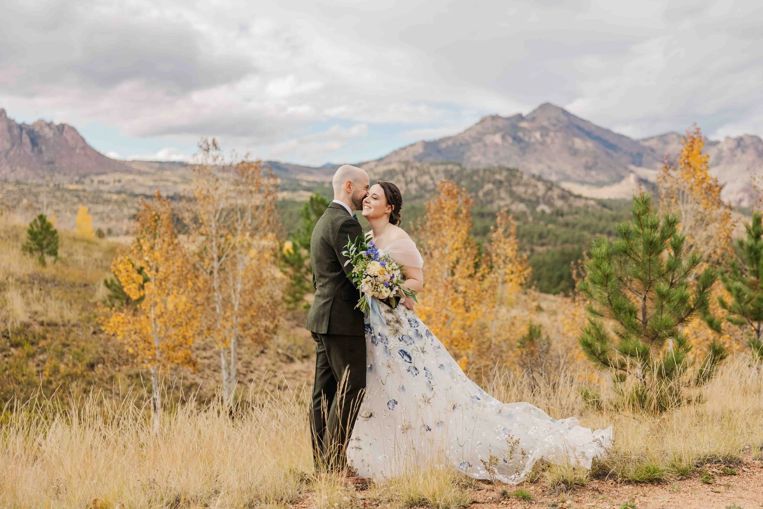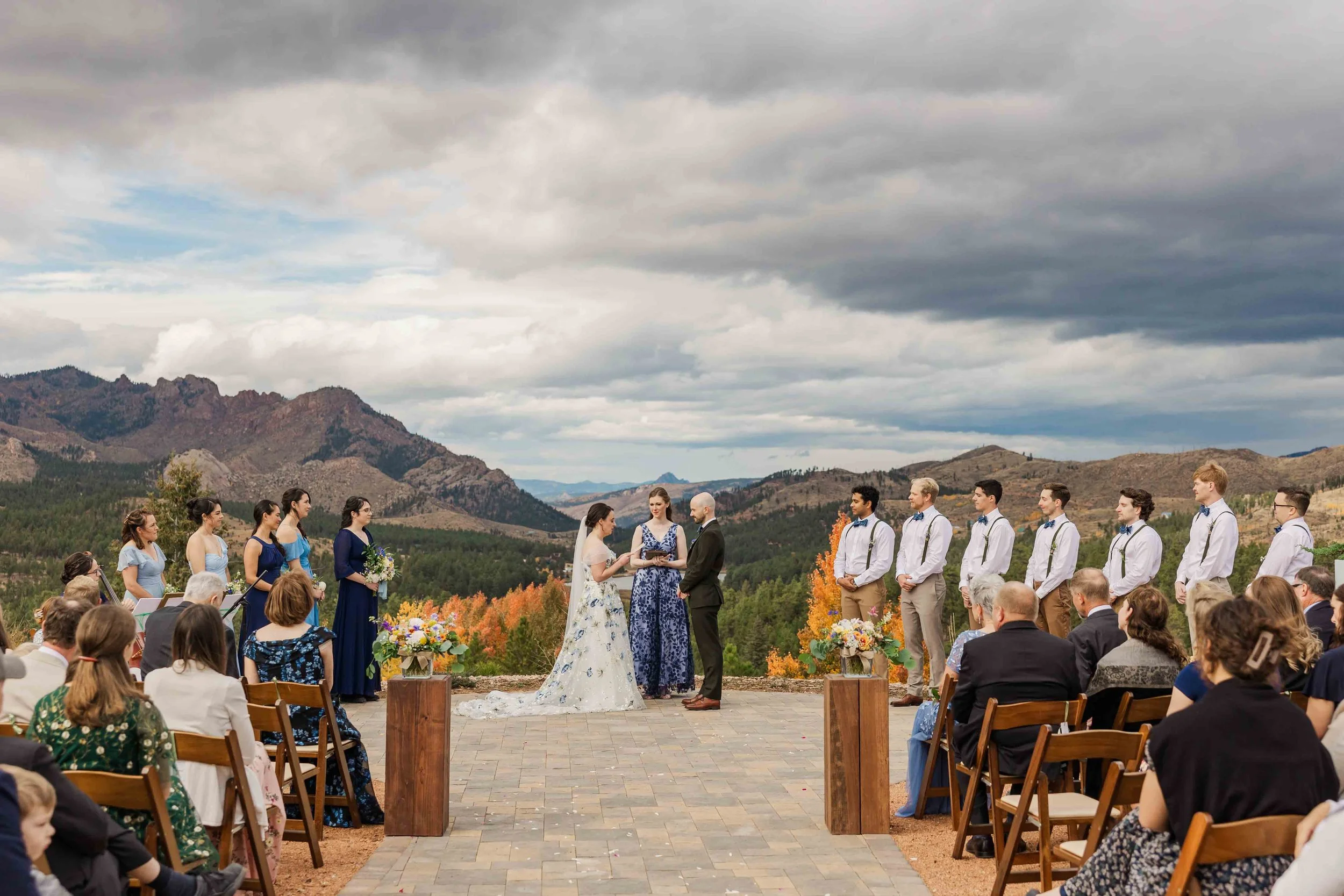 Choosing fall for a Colorado wedding brings an extra level of magic to a wedding day. The golden color of the trees creates a breathtaking backdrop, in Erin and Henk's case, perfectly complimenting the blues in their wedding attire.